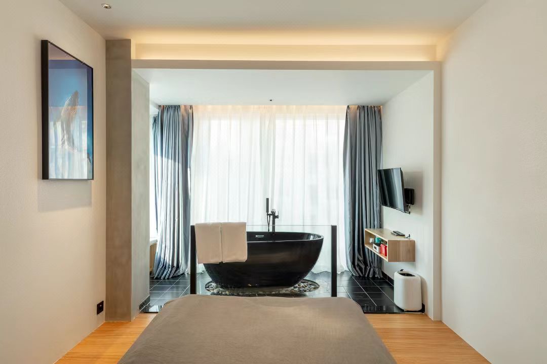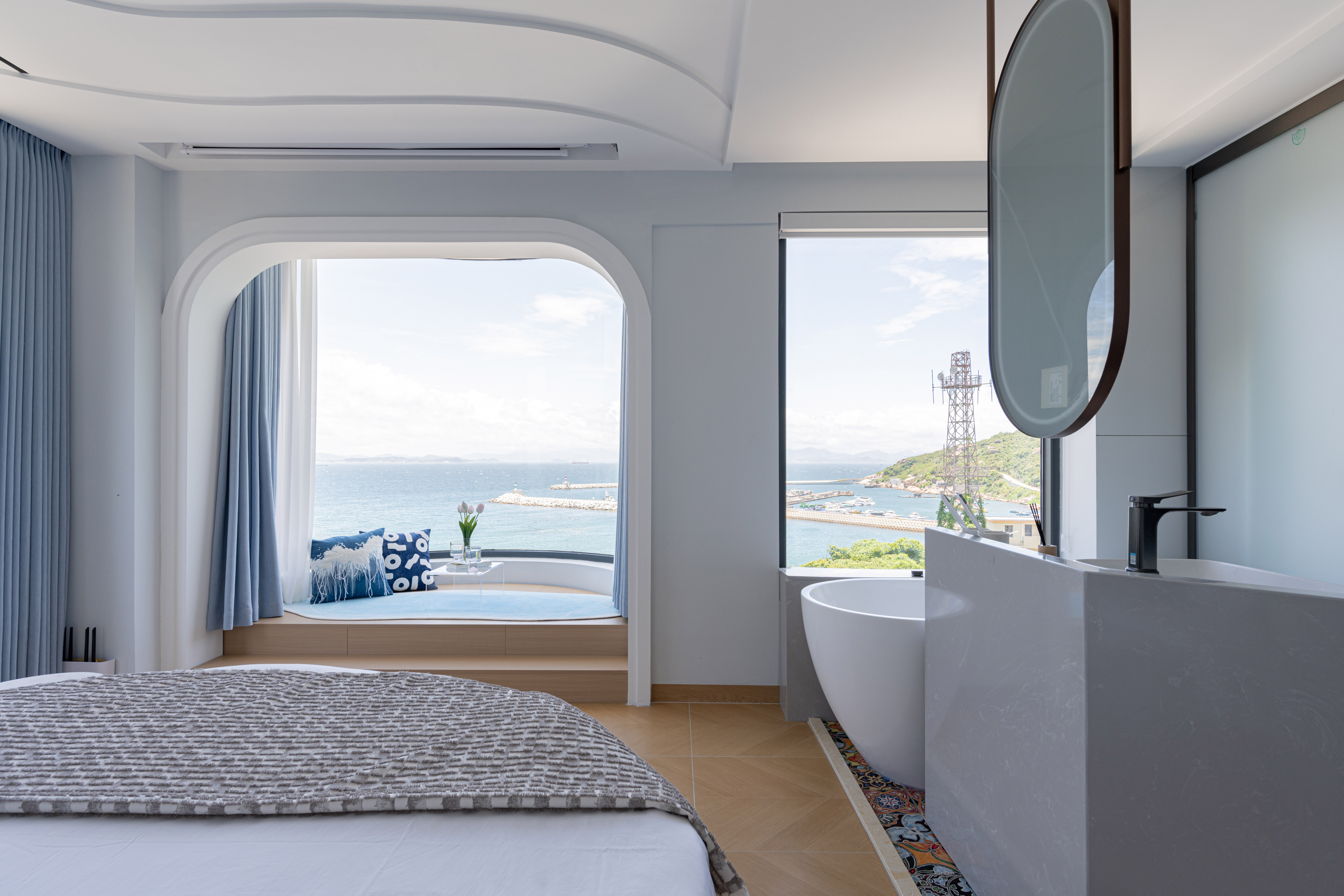民宿拥有海景房、亲子房、家庭套房、蜜月房等多种房型,房间布局面朝大海,海景落地窗如同画框,将湛蓝美景毫无保留地呈现在旅客眼前,让人不禁沉醉其中。管家式服务、星级酒店用品、智能语音系统、香薰设备,更为旅居时光提供品质保障。