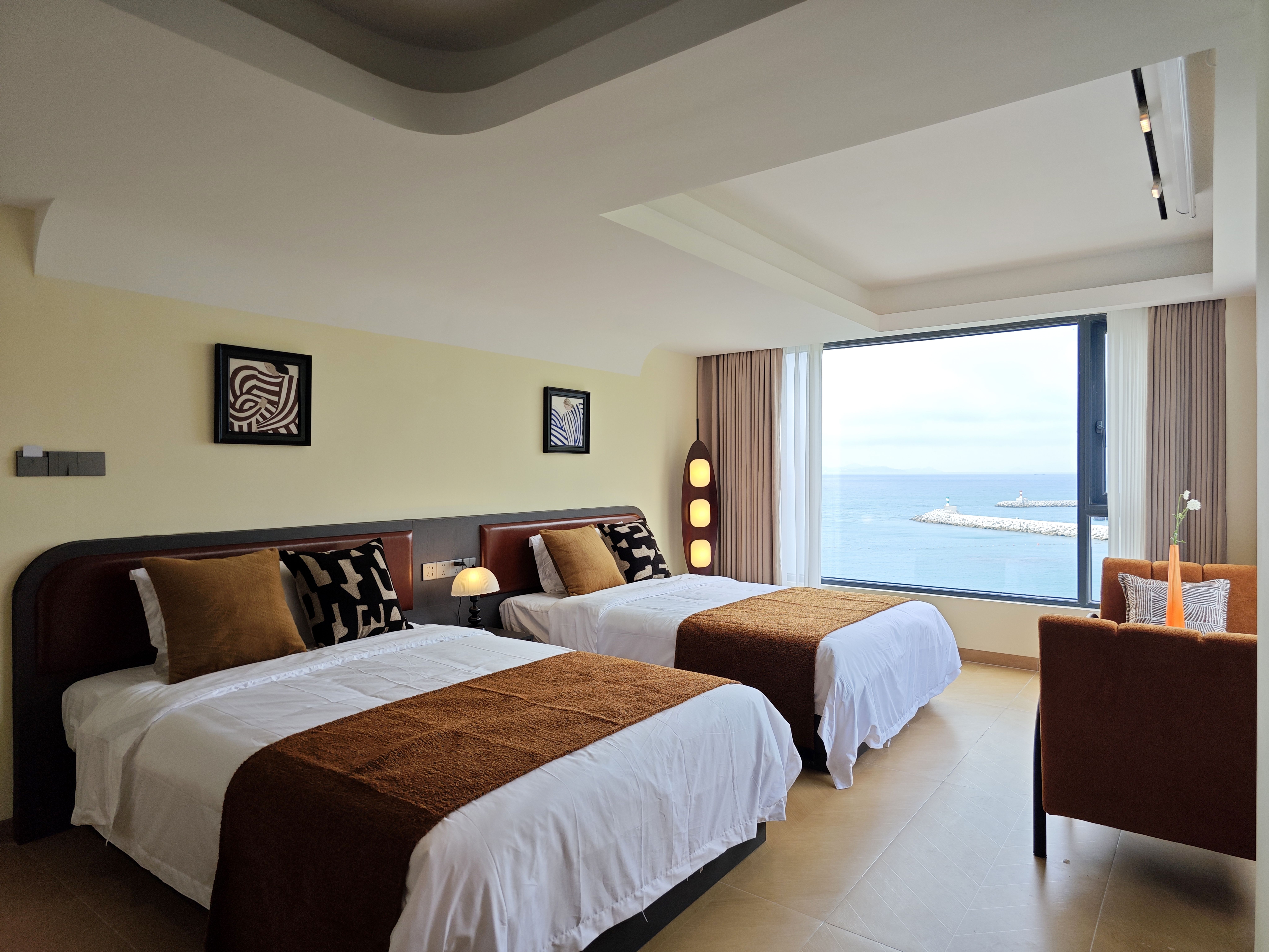 部分客房直面无垠碧海,能让人近距离感受大海的脉动,聆听大海的呼吸,枕着温柔的海风安然入眠。